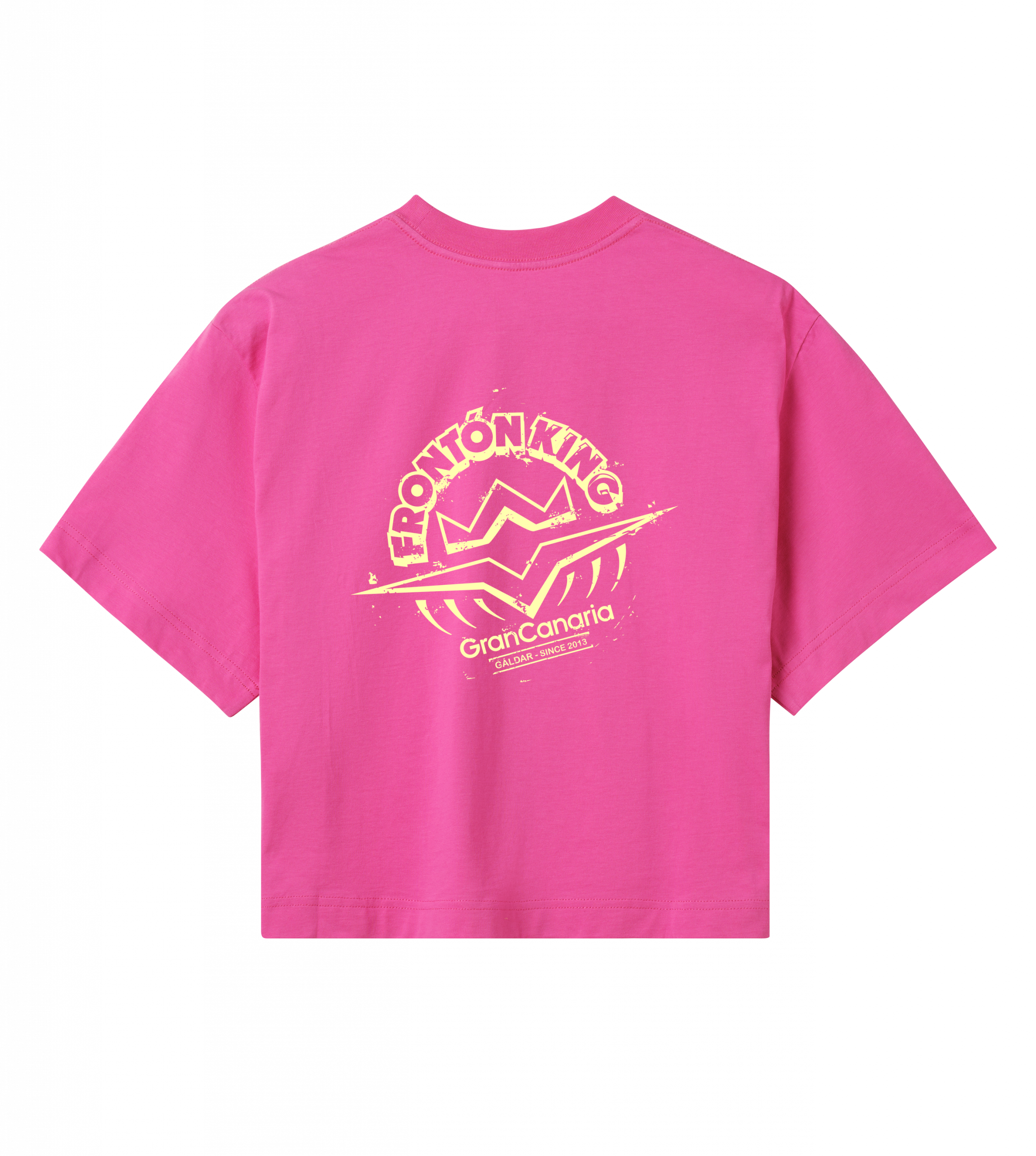 The Top Frontón King de mujer – Hyper Pink fusiona moda, sostenibilidad y espíritu libre. Diseñado con un corte boxy y moderno, cae justo por debajo del ombligo y ofrece una silueta femenina y relajada que se adapta a cada movimiento.