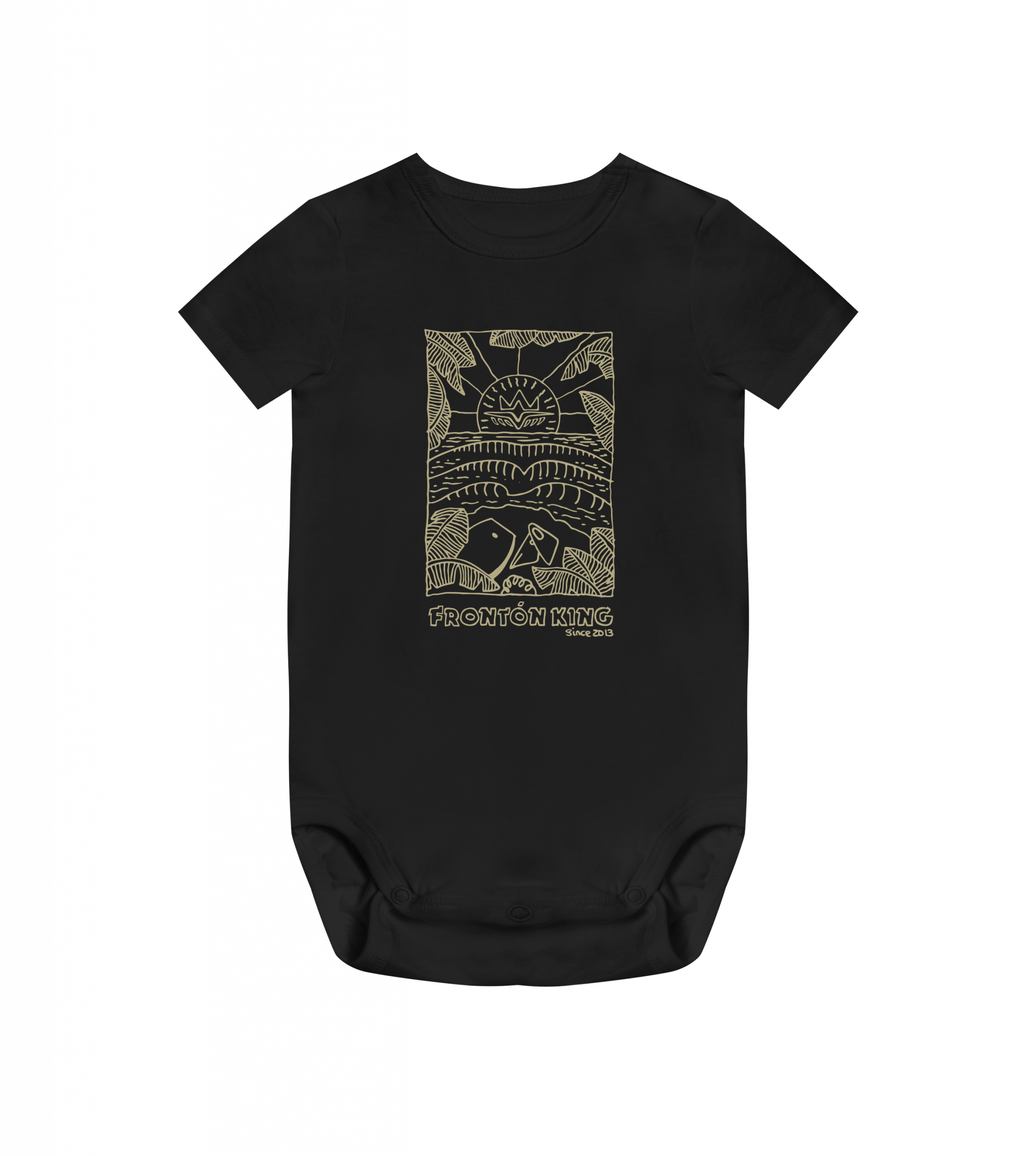 Diseñado para acompañar cada movimiento con total libertad, este bodysuit combina sostenibilidad, funcionalidad y estilo desde los primeros meses. Disponible en elegantes tonos Off Black y White, refleja el espíritu del océano y el legado del Frontón King, incluso para los más pequeños de la casa.