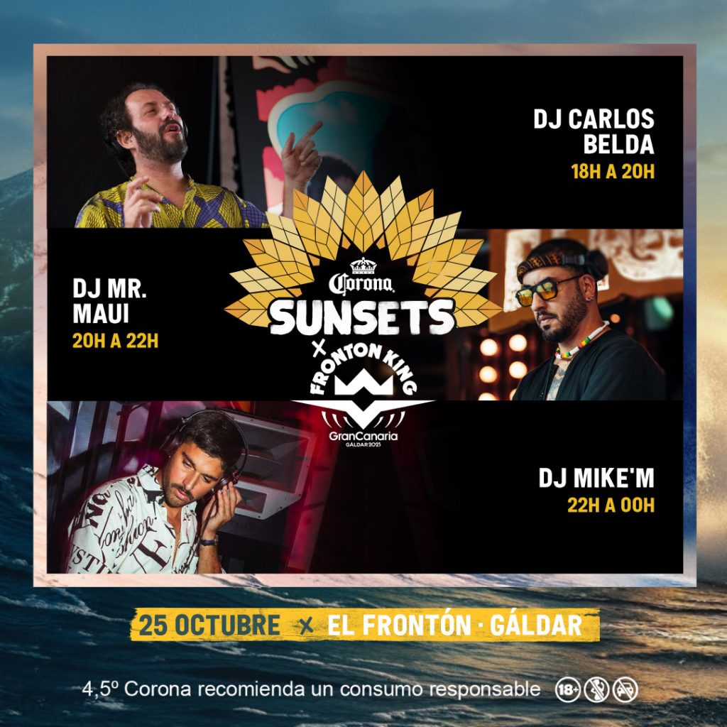 Disfruta de la magia del atardecer con Corona Sunsets Session, una experiencia única donde la música chill, deep house y ritmos tropicales crean la banda sonora perfecta frente al océano. Tres sesiones especiales para cerrar cada jornada del Frontón King con la energía del sol, el mar y el mejor ambiente.